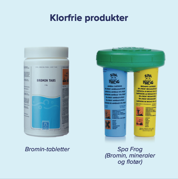 Bromin er et klorfritt alternativ som på flere vis kan minne om klor. Dette middelet er perfekt for hyttebruk da det ofte kjennetegnes ved at midlene er langtidsoppløsende. Klor oksiderer vannet og i tillegg desinfiserer det, det gjør ikke bromin. Bromin vil kun desinfisere vannet, dermed anbefaler vi å kombinere klor med kjemikalier som oksiderer og her passer SpaChock veldig godt. Gå videre til de ulike bromin produktene vi tilbyr og finn deg det alternativet som passer best for deg.