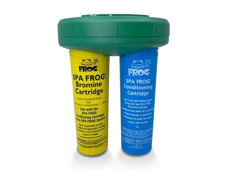 SpaFrog er et klorfritt alternativ og et substitutt for bromin tabletter. Dette middelet er vanligst å benytte på hytter ettersom det har lang varighet. Den gule patronen inneholder bromin, altså selve middelet som dreper bakterier, mens den blå patronen inneholder mineraler.